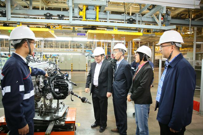 本次专家探访主要参观了工厂四大工艺车间中的冲压、焊装和总装车间,过程中,长安汽车派出专业工程师全程讲解并回答专家们提出的问题。